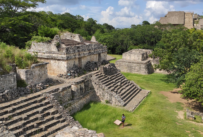 Руины древнего города Эк Балам что в переводе с языка майя-юкатеков означает Черный ягуар, находятся недалеко от знаменитой арх. зоны Чичен-Ица. Но существенным отличием от Чичен-Ица и неоспоримым плюсом является возможность приблизиться и взобраться на любое строение, в том числе на высочайшую пирамиду-дворец, откуда открывается потрясающий вид на древний город и окружающий его тропический лес.